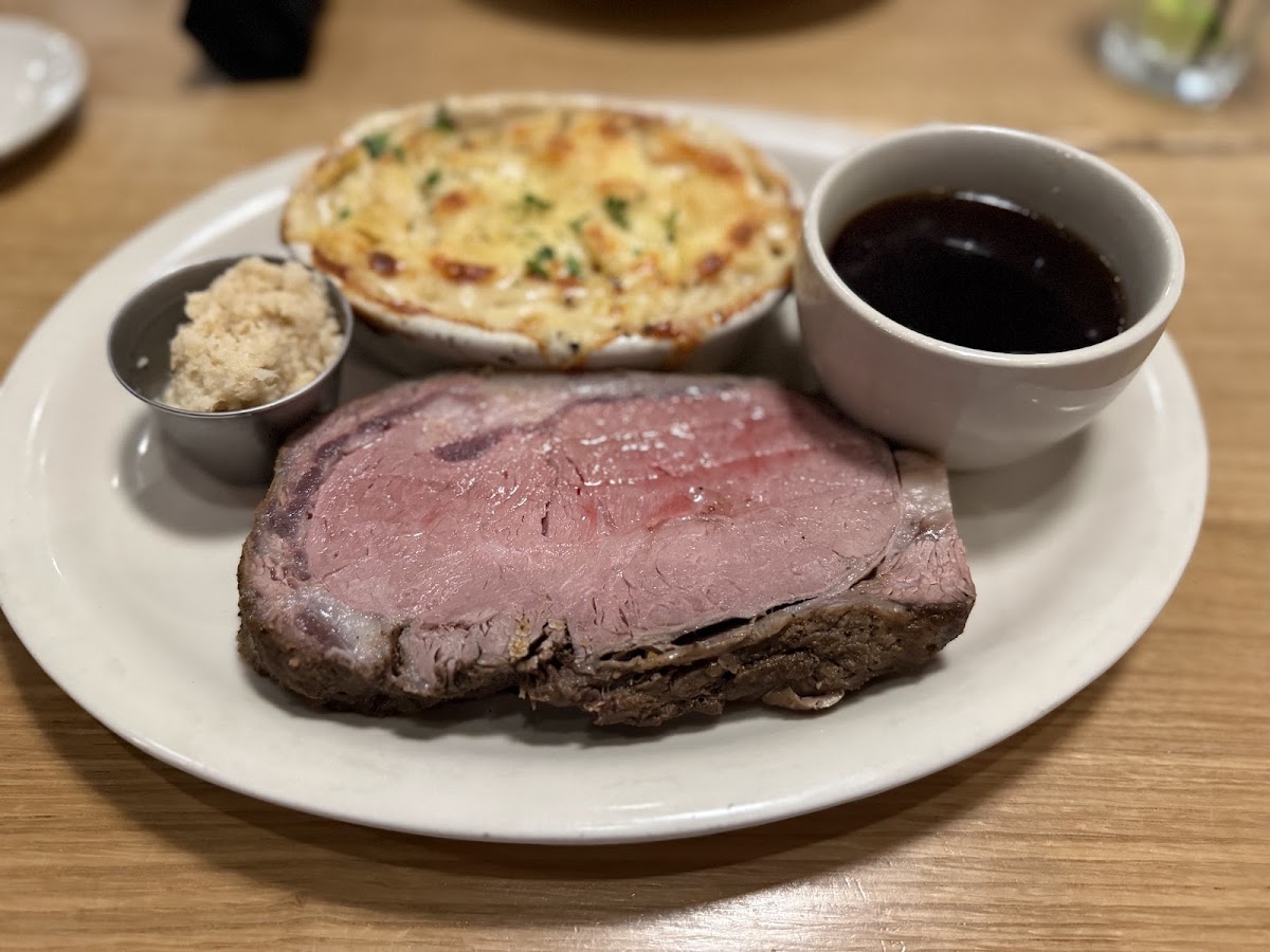 The food is always amazing here! This prime rib may have become my new favorite! Caesar salad was amazing also! Our server Justin was so attentive offered many options and suggestions which were on point! He was GREAT!