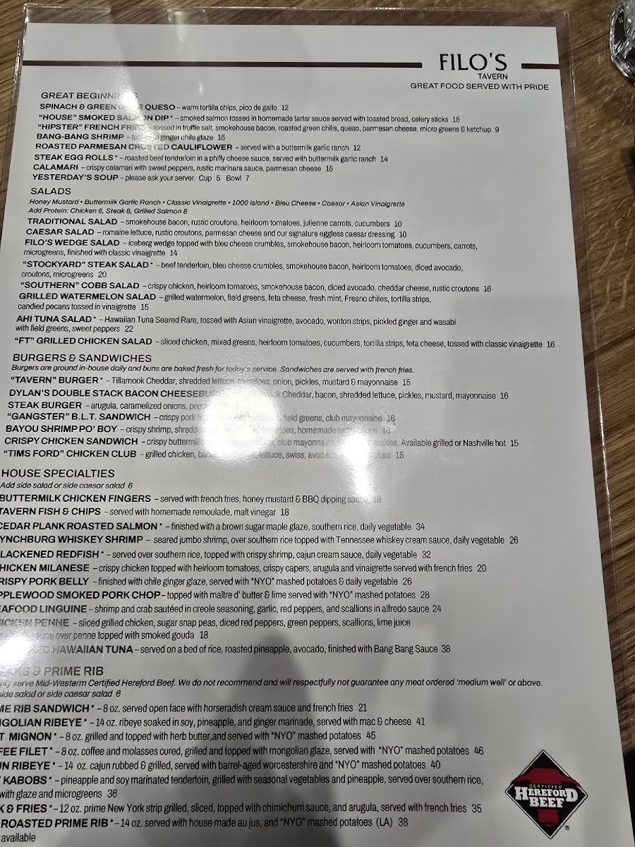 Filo's Tavern offers a thoughtfully curated menu that balances hearty, comforting dishes with fresh, approachable flavors. The selection leans into casual yet satisfying meals, perfect for a relaxed lunch, evening gathering, or weekend treat. Whether you’re settling in for a laid-back dinner or sharing small plates over drinks, the menu caters to a variety of tastes and appetites.